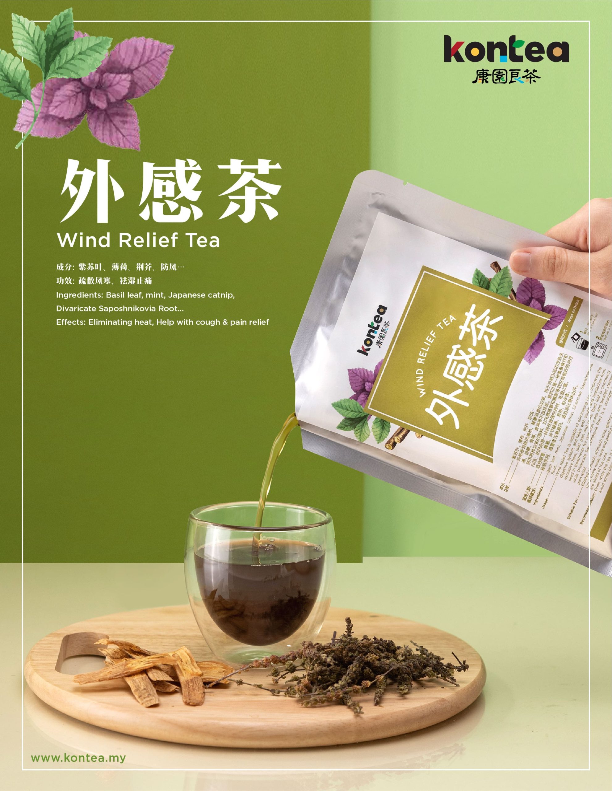 外感茶有疏风清热、解暑消食的功效,用于外感引起的发热头痛、咳嗽、骨痛、食滞等不良反应。紫苏叶是一种兼备食疗和药用两种功效的香料,对风寒感冒和腹胀等状况有很好的治疗作用;防风则是一种药性较强的药材,祛湿止痛。